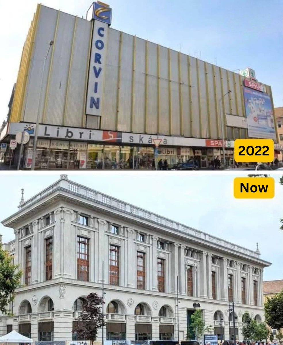 Aqui, a renovação do Palácio Corvin, uma loja de departamentos histórica em Budapeste, Hungria.
